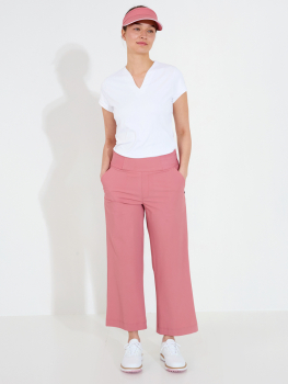 Putter 7/8-byxorna är tillverkade av en mjuk och mycket elastisk polyamid/spandexblandning. De har fukttransporterande och DryCool-effekter. Designen är klassisk med en platt framsida med fuskgylf, vida ben och en resår i midjan för extra komfort. Två framfickor och knappar med rhinsten som fina detaljer på de två bakfickorna. Abacus-logotyp på höger bakficka.