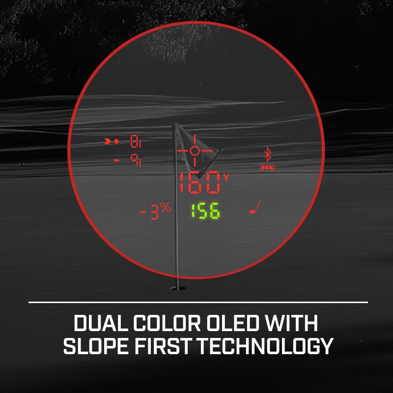 Kikaren är även vattentålig (IPX6 klass). Kikaren mäter avstånd mellan 5-1100 meter och det är lätt att få avståndet till flaggan, med jolt funktionen, på upp till 450 meter. Kommer med ett CR2 batteri.