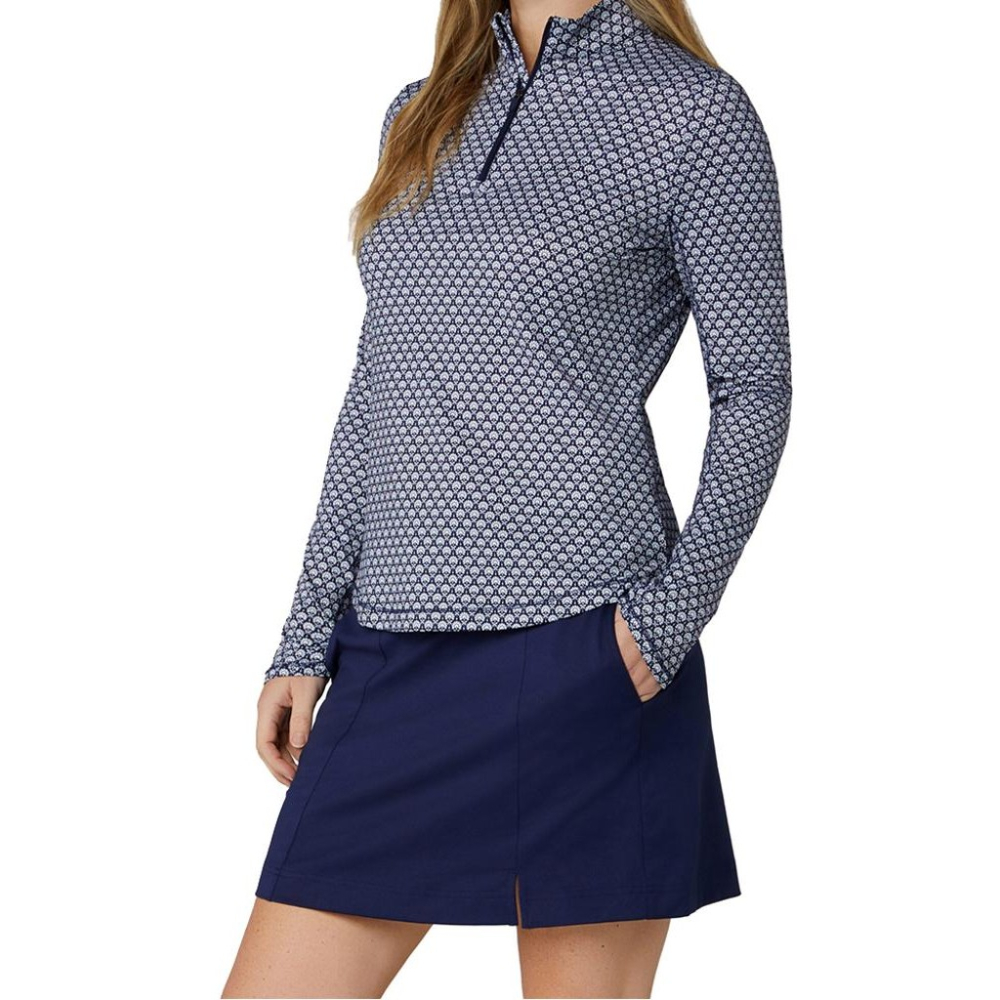 Här får du en elegant helmönstrad 1/4-tröja som är ett utmärkt tillskott till alla kvinnors sommargolfgarderob. OPTI-DRI teknologin håller dig torr genom att transportera bort fukt. Det stretchiga materialet tillsammans med Callaways Swing Tech teknik är utformat för att ge obegränsad rörelsefrihet under den sving eller annan aktivitet. UV-skydd ser till att skydda mot skadliga solstrålar.