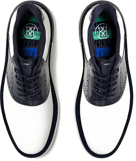 Byggda för prestanda, med klassisk stil, är dessa G/Fore golfskor ett fräscht tillskott till din garderob. Gallivan2r T.P.U. Saddle golfskorna har ett innovativt spiksystem av gummi och dämpad interiör. Ortholite innersulan är designad med en skumkudde med trippel densitet för överlägsen komfort och kan tas ur och tvättas. 100% antimikrobiellt nätfoder som förbättrar andningsförmågan och förhindrar lukt. Ett stycke dual density 3D gjuten hälkopp ser till att ge dig bästa hälgrepp för bästa komfort samt stabilitet.