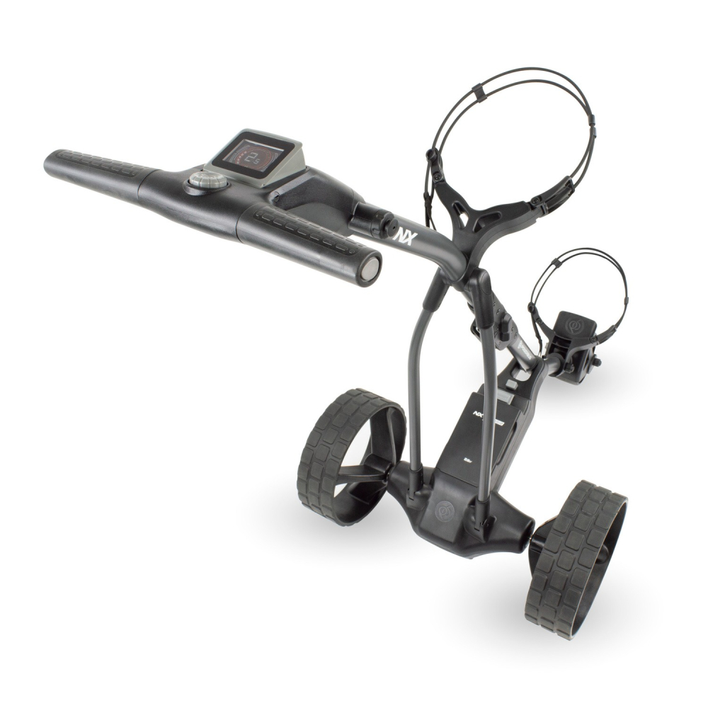 Batteriet är smidigt att hantera och räcker upp till 36 hål på en laddning. Den fälls ihop med ett enhandsgrepp och tar minimalt med plats i bilen. Vagnen är även redo för tillbehör utan extra fästen.