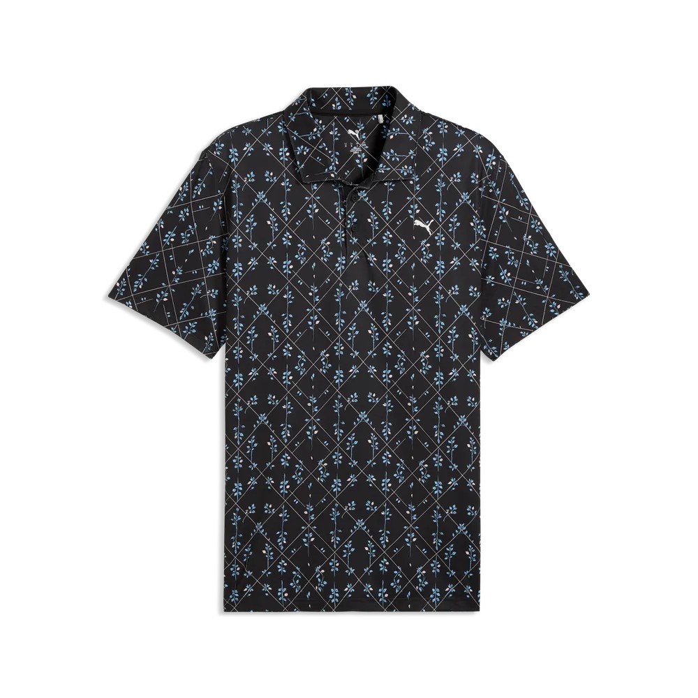 Puma Mens Cloudspun Argyle Bloom Polo - Black/Rose Blossom