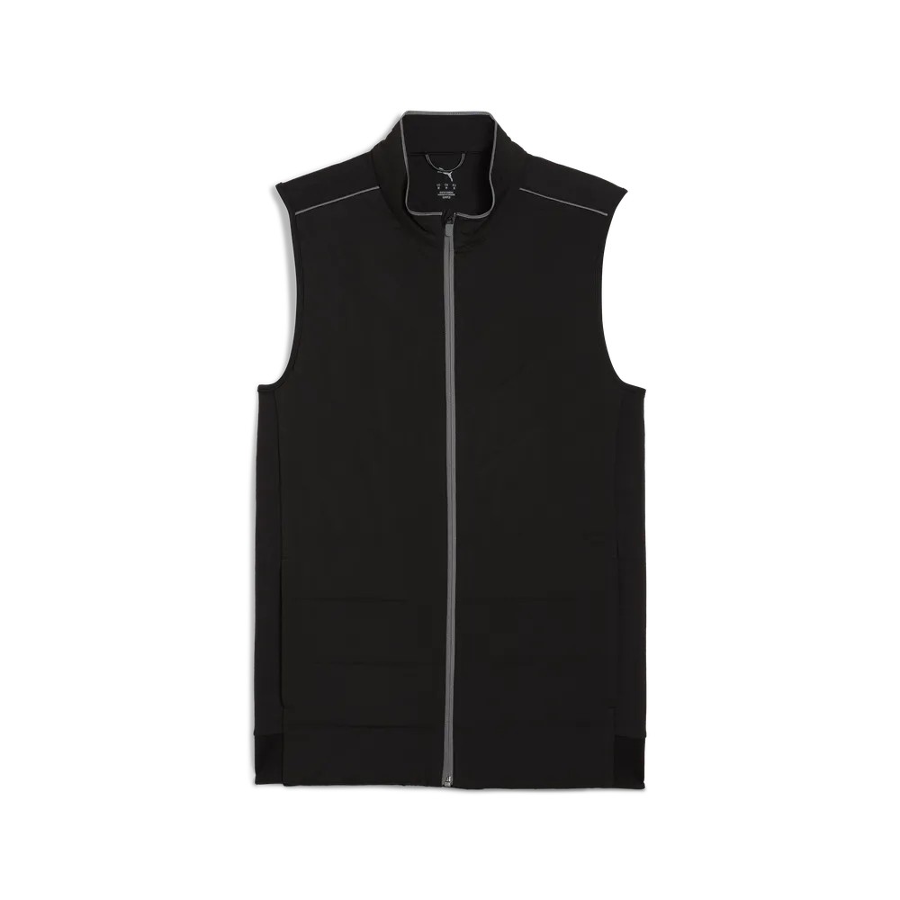 En tjockare väst med vadderad, quiltad framsida för mer värme utan att påverka rörligheten. Underbart mjukt och med mycket stretch så att det inte hindrar din sving. Hög krage skyddar halsen och hellångt blixtlås gör att du kan reglera ventilationen. Dubbla framfickor. Tillverkad av återvunnen polyester så att plagget värmer både dig och din själ.