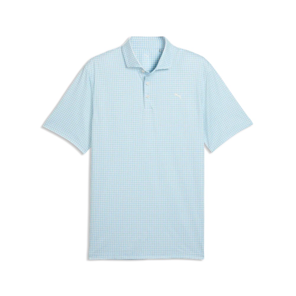 Puma Mens Cloudspun Mono Check Polo - White Glow/Light Blue