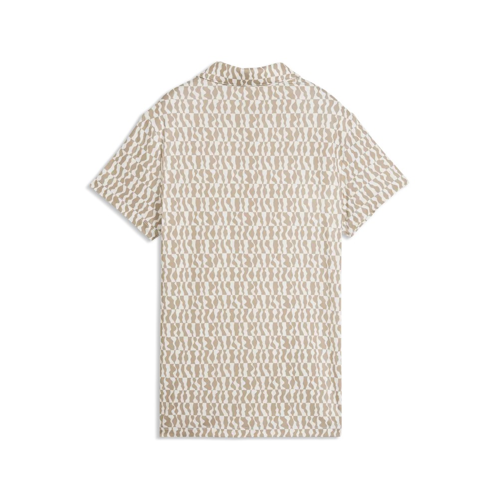 Mönstrad golfpolo med mönster av vågor som designelement. Kort ärm, traditionell krage samt ett tunt tyg för varma dagar. Tillverkad i det extremt mjuka funktionsmaterialet Cloudspun som också har rejält med stretch för att sitta skönt utan att hindra svingen. Gjord av återvunnen polyester samt elastan för mer stretch och för att svalka både dig och planeten.
