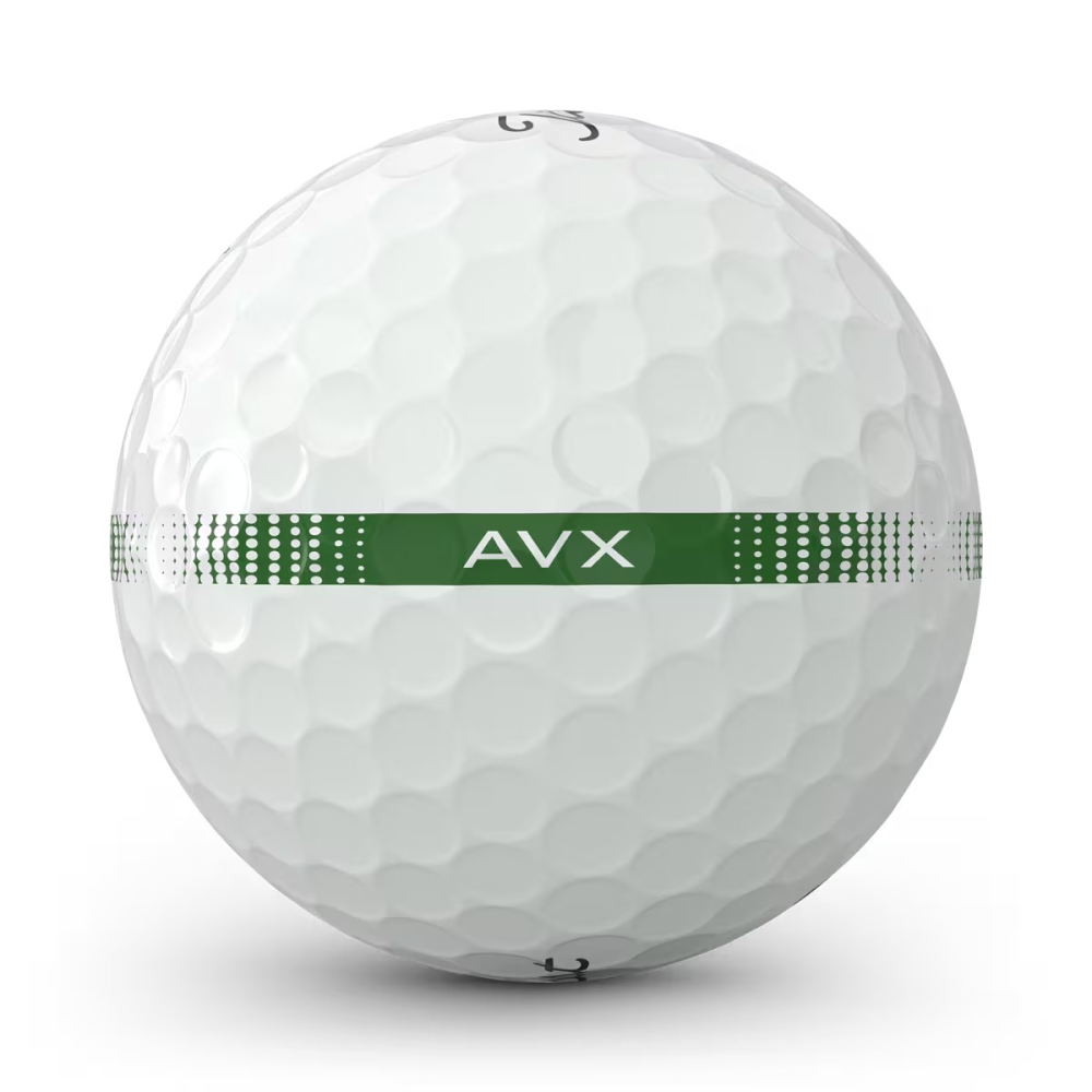 Nya AVX är en premiumgolfboll med tredelskonstruktion och levererar seriös längd och kontroll med väldigt mjuk känsla. AVX rekommenderas för spelare som har glädje av en kombination av reducerat spinn på långa slag med utmärkt kontroll kring greenerna samt vill ha mycket mjuk känsla. Optimerad aerodynamik för låg, penetrerande bollflykt på långa slag och med hög topphöjd för mellanjärnen. En ny och snabbare kärna levererar mycket längd från tee till green och mycket mjuk känsla. Det omarbetade och högflexande mantellagret ger mindre spinn på långa slag. Nytt, mjukare uretanskal ger mer spinn i närspelet. Här får du Titleist AIM system på bollen för att enklare kunna linjera upp bollen mot målet/hålet.