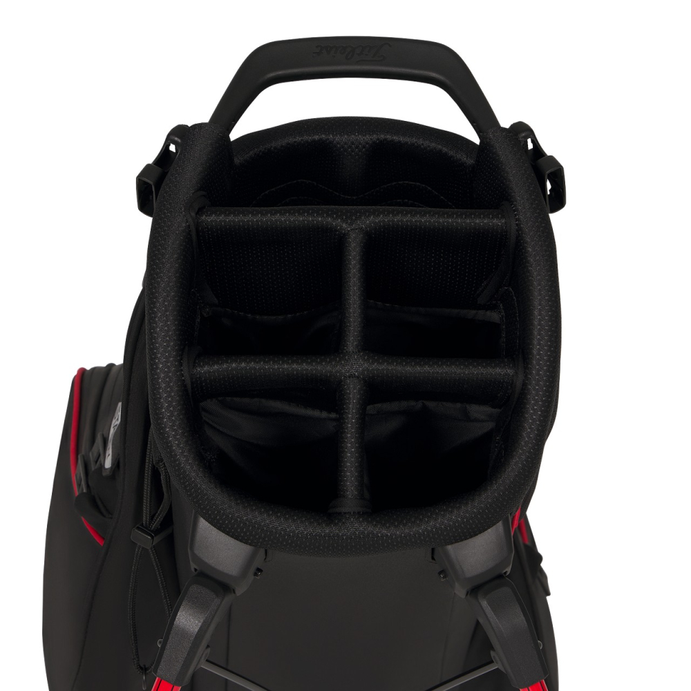 Helt nya Players S5 StaDry är en i grunden omarbetad bärbag som introducerar en ny generation av vattentät prestanda och ordning. Här finns en helt ny benställning och enklare hantering av klubborna med en större 5-delad topp och med fullängdsavdelare, säkrade ben när bagen är på ryggen samt utmärkt stabilitet med en större botten och tre stag.
