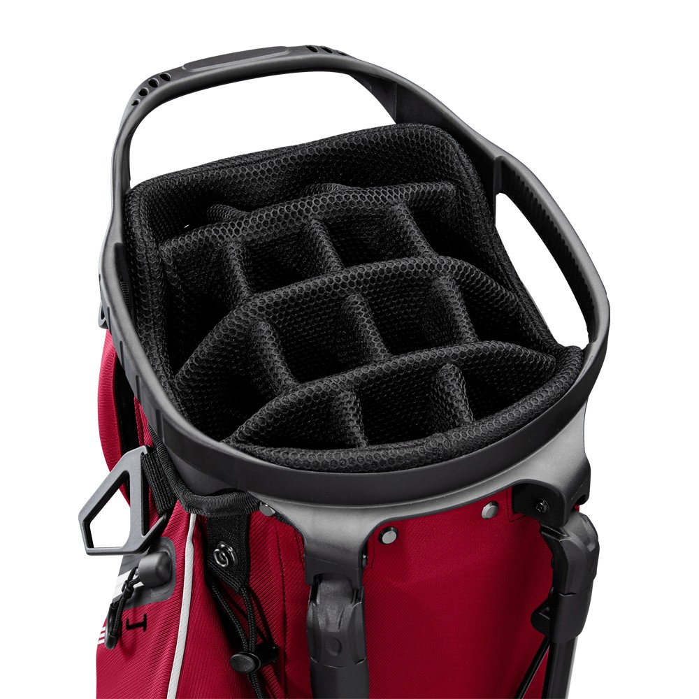 Den nya Wilson Talus bärbagen har en hybriddesign för de golfare som gillar att både bära men också ibland använder en golfvagn. Talus erbjuder en sömlös mångsidighet och användarvänlighet oavsett hur du tar dig runt på banan. Bärbagen är tillverkad av robusta och lätta material som ger massor av bekvämlighet och funktionalitet utan att tynga ner dig. Den förstärkta Spine-tekniken tillsammans med det omdesignade självaktiverande benstativsystemet ger hög stabilitet när bagen ställs ner. Den 14-delade toppen skyddar alla klubbor samtidigt som den bibehåller organiseringen under hela rundan. 9 st lättåtkomliga fickor, varav en vattentät, ser till att du får med dig det du behöver för rundan.